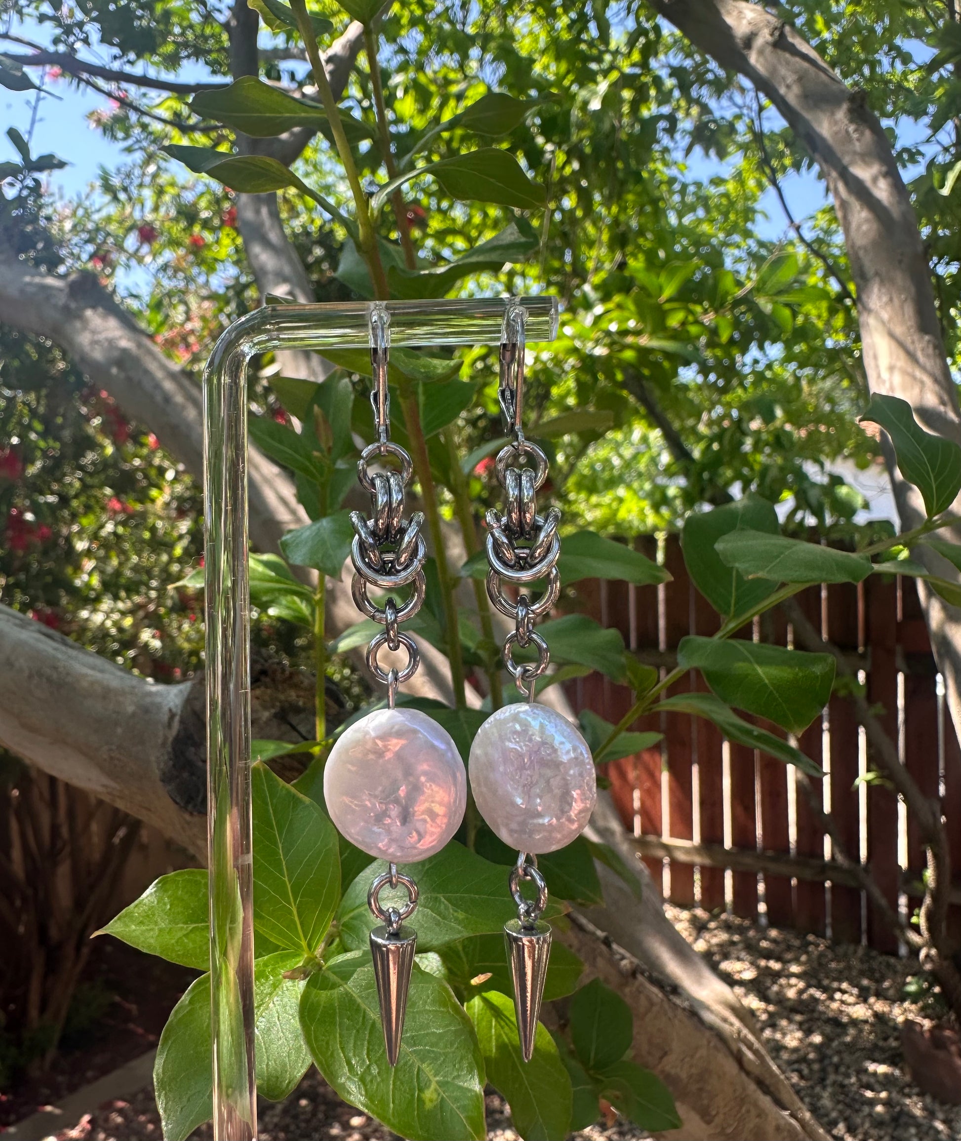 Byzantine weave with coin pearls and spikes. Made with stainless steel